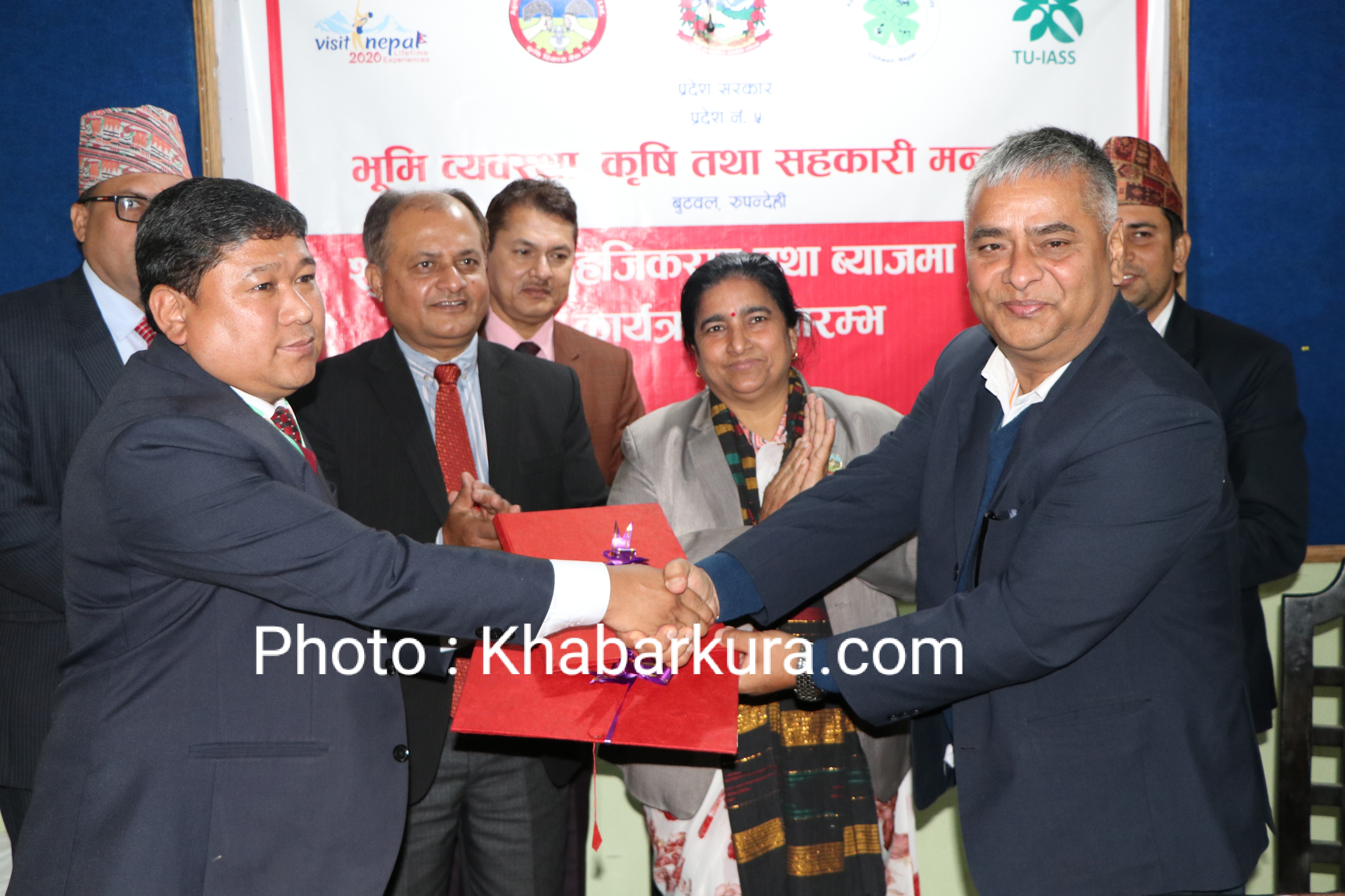 बुटवल । प्रदेश ५ सरकारको कृषि भुमि ब्यवस्था र सहकारी मन्त्रालय तथा कृषि बिकास बैकका बिच किसानलाई शुलभ कर्जा सहजिकरण तथा ब्याज अनुदान कार्यक्रम कार्यक्रमका लागि सम्झौतापत्रमा हस्ताक्षर भएको छ ।