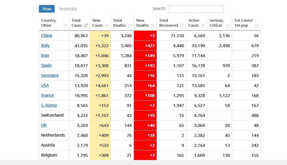 इटली, इरान, स्पेन, फ्रान्स, अमेरिका, बेलायत लगायतका देशमा नयाँ सङ्क्रमण र ज्यान गुमाउनेको सङ्ख्या उच्च रहेको छ ।