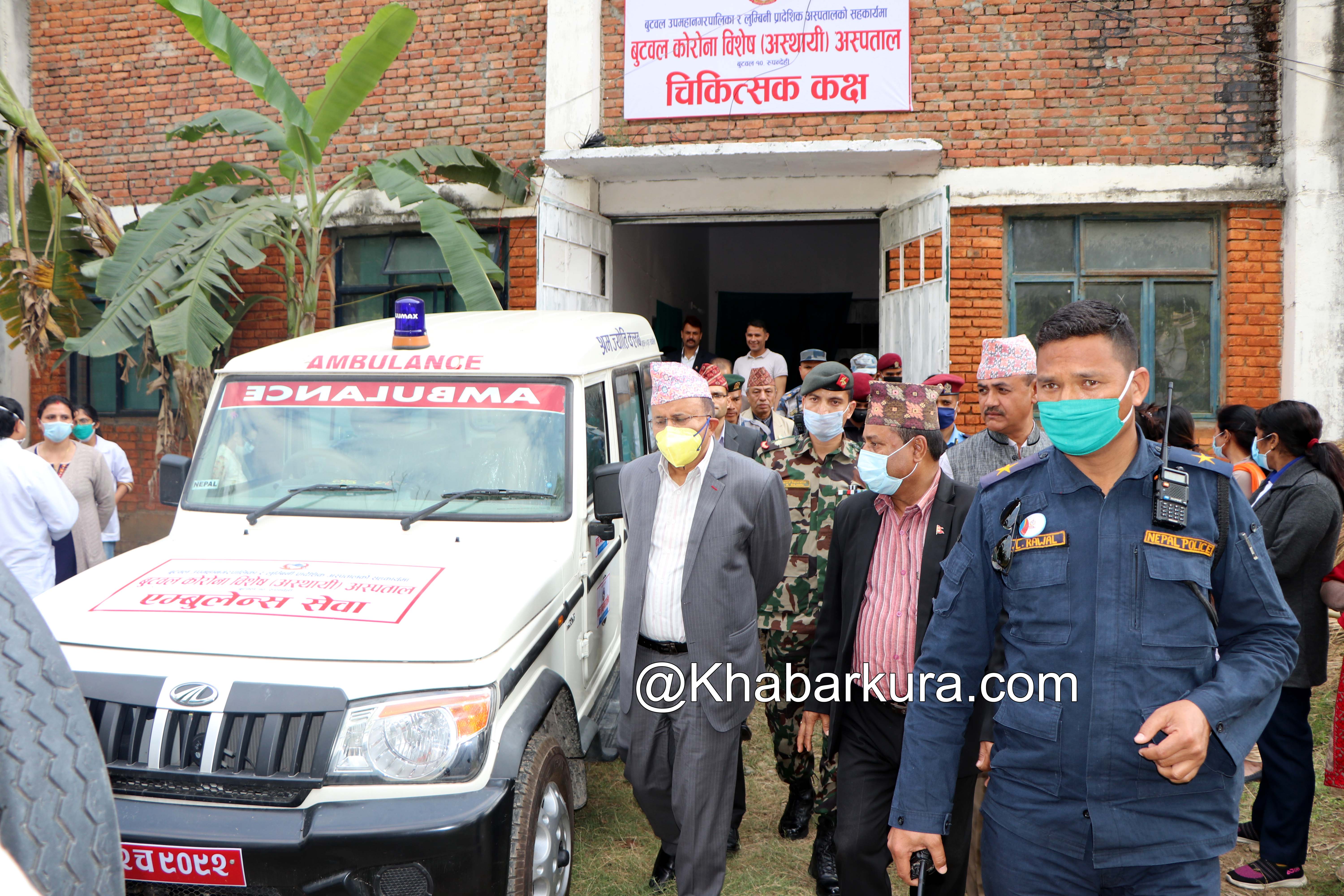 बुटवल । बुटवल उपमहानगरपालिकाले लुम्बिनी प्रादेशिक अस्पतालको सहकार्यमा निर्माण भएको बुटवल कोरोना विशेष(अस्थाई)अस्पतालको मुख्यमन्त्री शंकर पोखरेलले निरीक्षण गर्नुभएको छ ।