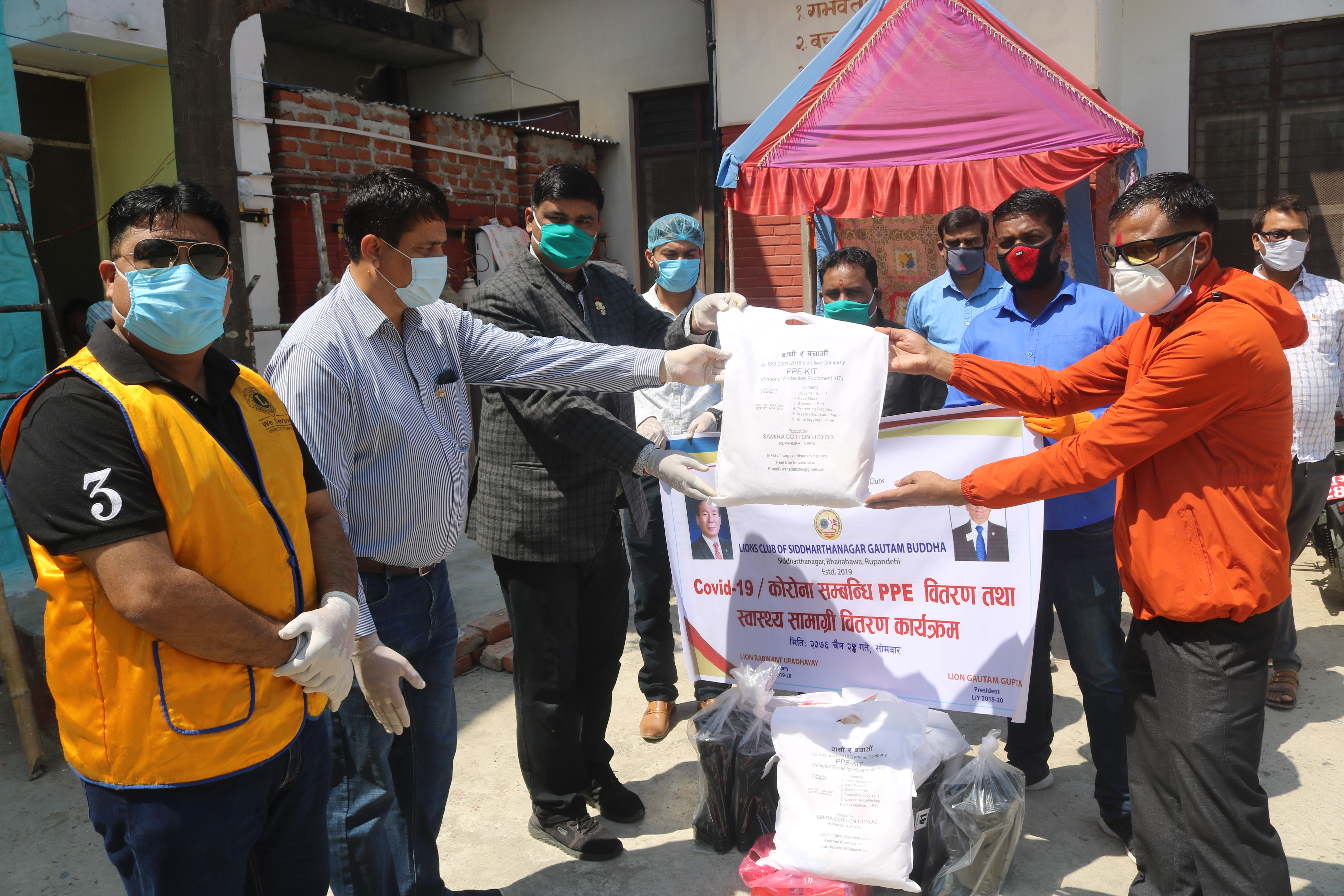 भैरहवा । लायन्स क्लब अफ सिद्धार्थनगर गौतमबुद्धले भैरहवास्थित दुई अस्पतालका स्वास्थ्यकर्मीहरुलाई पर्सनल प्रोटेक्टिभ इक्युपमेन्ट (पीपीई) प्रदान गरेको छ ।