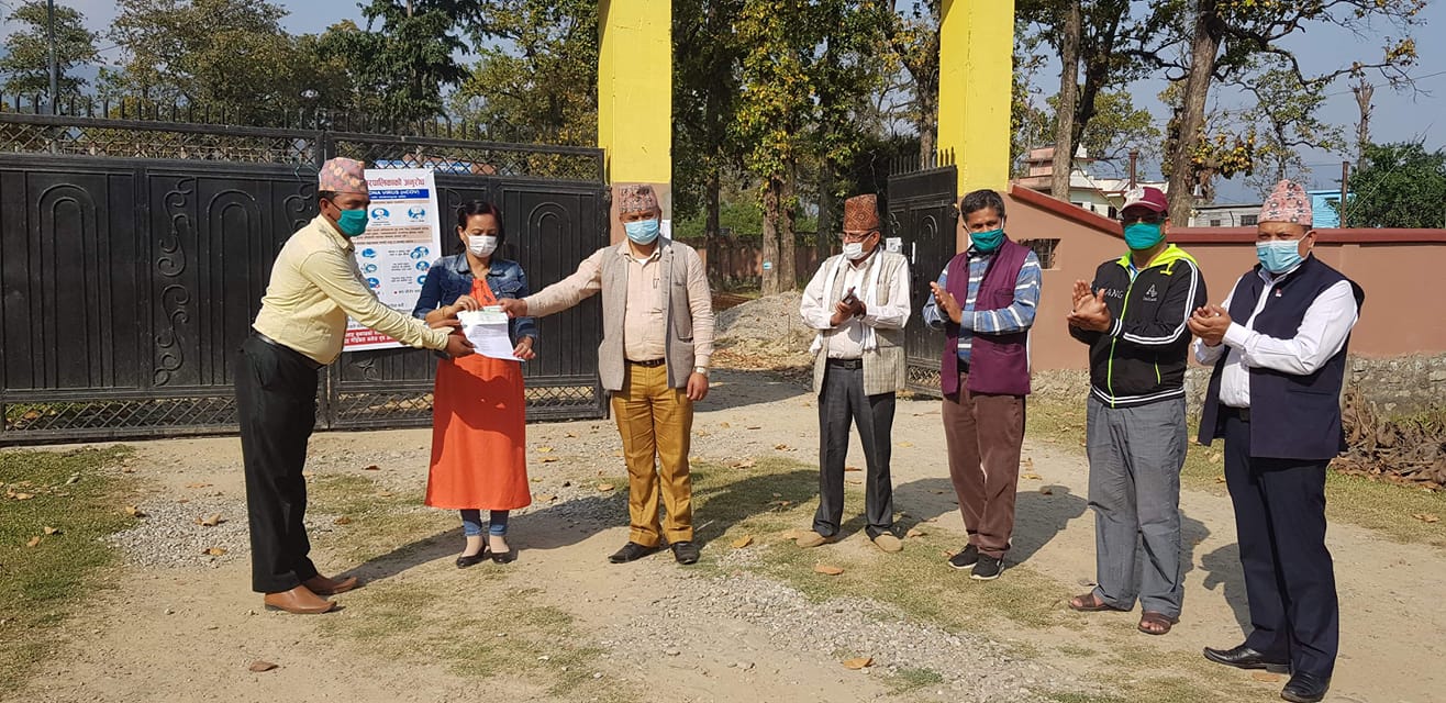 संघका लेखा समिति सदस्य चक्रपाणि तिवारीले मंगलबार नगरपालिकाका प्रमुख हिरा बहादुर खत्री र उपप्रमुख विद्या लक्ष्मी गुरुङलाई संयुक्त रुपमा ६० हजारको चेक हस्तान्तरण गर्नुभयो ।