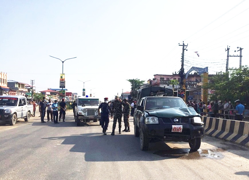 नेपालगंजबाट कोहलपुर तर्फ आई रहेको सेनाको गाडिले एन टि भि चोकमा मोटर साईकल लाई ठक्कर दिएको थियो । ठक्कर पछि सेनाको गडि सडक छेउमा रहेको डिभाईडरमा ठोक्किएको स्थानिय प्रत्यक्षदर्शीले जनाएका छन ।