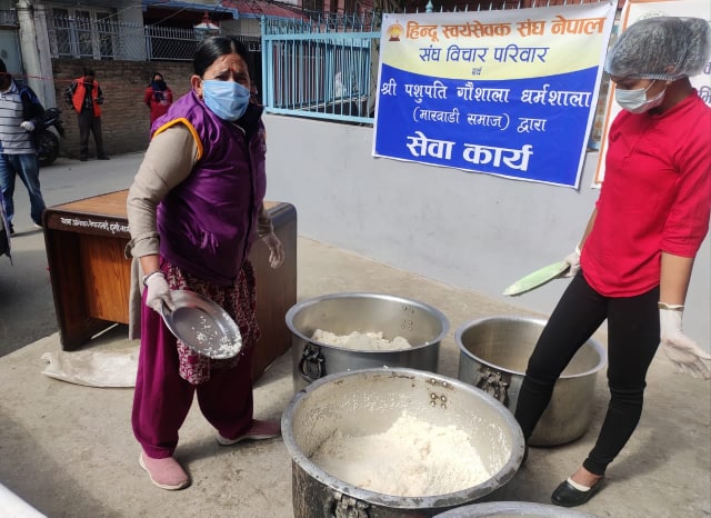 काठमाडौं । कोरोना भाईरसको संक्रमणबाट जोगिन सरकारले लगाएको लगाएको लकडाउनका कारण खाना खानसमेत अप्ठेरोमा परेका व्यक्तिहरुलाई हिन्दू स्वयम् सेवक सघं परिवार र पशुपति गौशाला धर्मशालाले खाना वितरण कार्यलाई निरन्तरता दिएका छन् ।