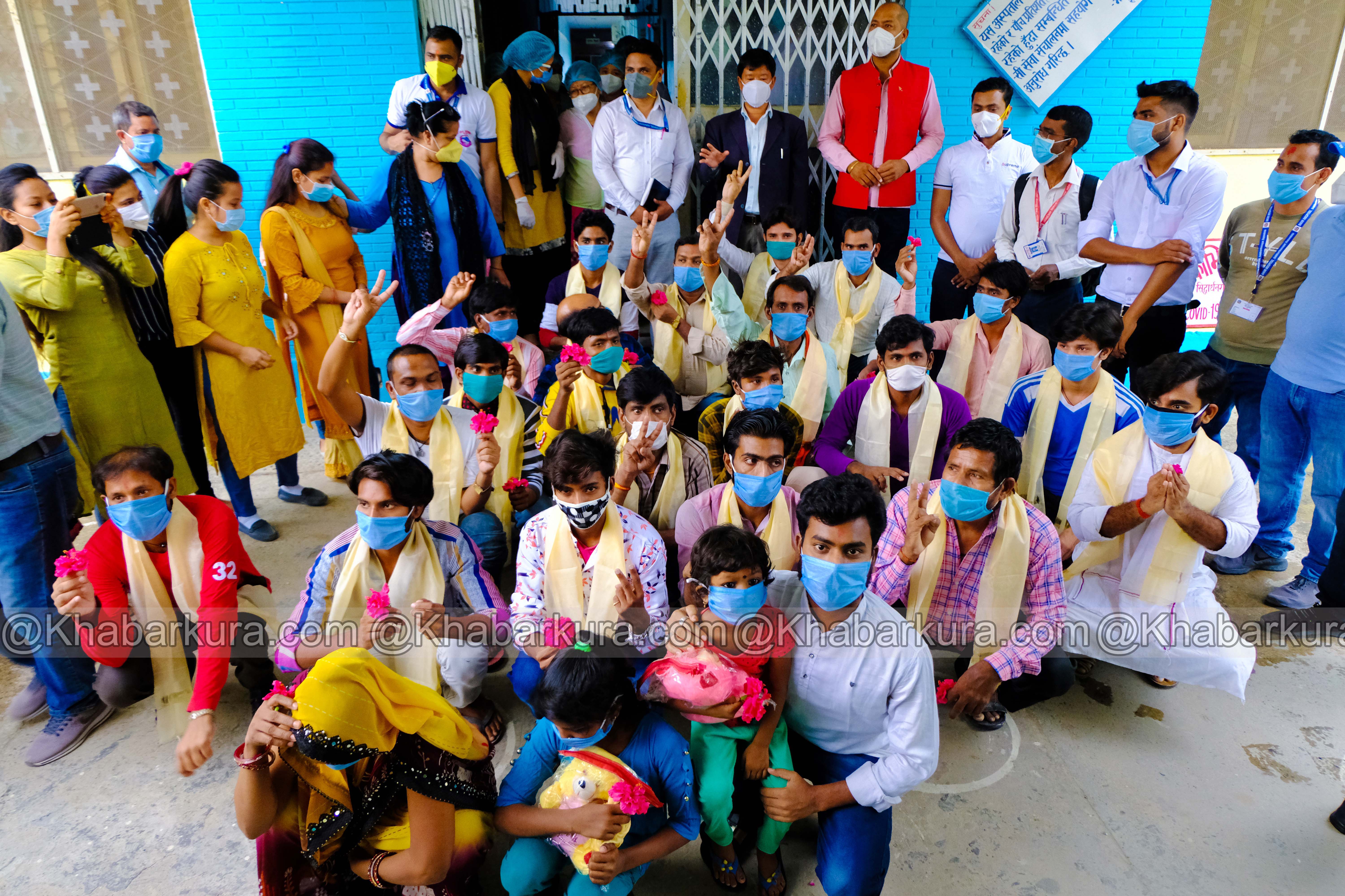 प्रदेश नम्बर ५ का सामाजिक विकासमन्त्री सुदर्शन बरालले डिस्चार्ज भएका बिरामीहरुलाई पुष्प र खादा ओडाई बिदाई गर्नुभएको थियो । बिदाई गर्दै मन्त्री बरालले कोरोनाका पहिलो स्टेजका बिरामी भएका कारण नआत्तिन आग्रह गर्नुभयो ।