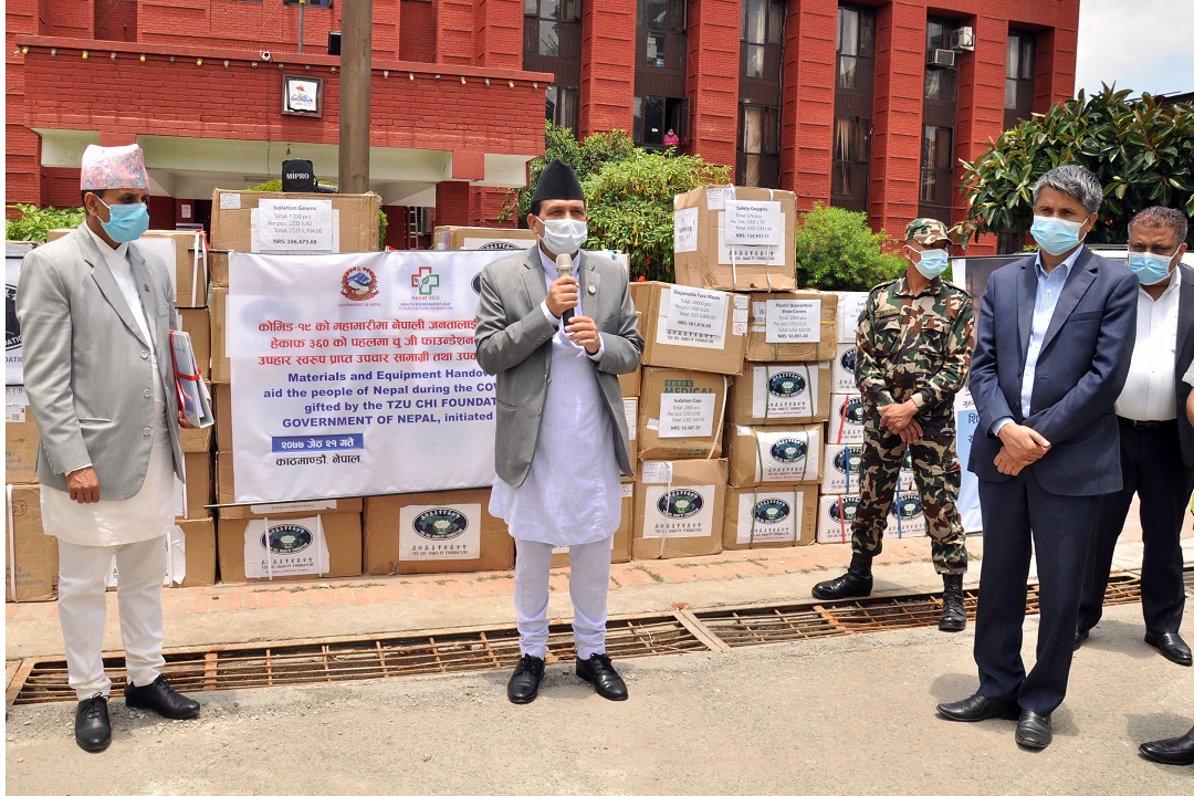 अन्तर्राष्ट्रिय बौद्ध संस्था चु जी फाउण्डेशनको पहलमा हेल्थ इन्भ्याइरोन्मेन्ट एण्ड क्लाइमेट एक्सन फाउण्डेशन (हेकाफ ३६) ले आज उपलब्ध गराएको स्वास्थ्य सामग्री ग्रहण गर्दै मन्त्री ढकालले सामान्यावस्थाका बिरामीलाई उपचारका लागि आइसोलेसनकक्ष स्थापना गरी त्यहाँ राखिने बताउनुभयो । उहाँले अन्तर्राष्ट्रिय अभ्यास र अध्ययनमा सङ्क्रमित भएकामध्ये ८० प्रतिशत बिरामी सामान्यावस्थाका हुने भएकाले गम्भीर अवस्थाका बिरामीलाई अस्पताल र उपचारको अभाव नहोस् भन्नाका लागि अब नयाँ नीतिमा जाने स्पष्ट गर्नुभयो ।