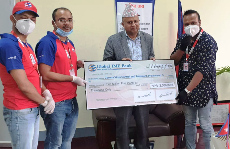 कोरोना उपचारका लागि ग्लोबल आइएमई बैकले दियो प्रदेश ५ सरकारलाई २५ लाख