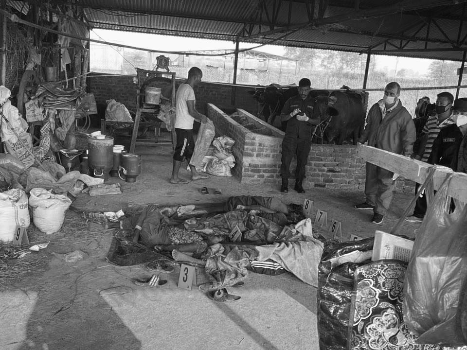 बिहान अन्दाजी ३ बजेको समयमा तिलोत्तमा–१०, कान्छी बजारस्थित रामबहादुर पुनको गंगादेवी पशु फार्ममा ५ जनाको सामुहिक हत्या भएको थियो ।