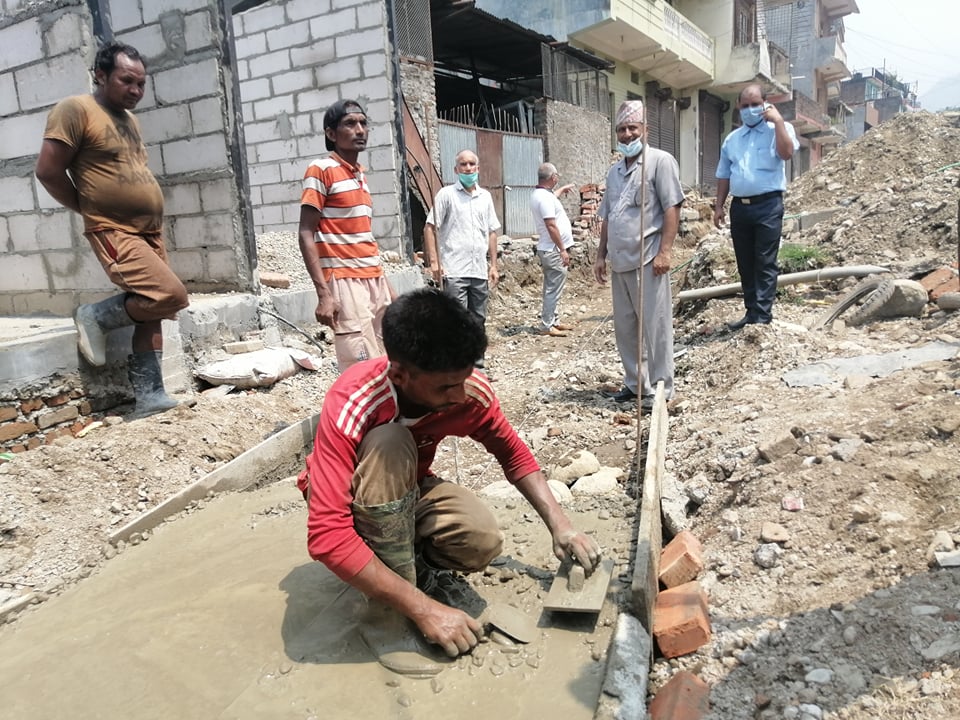 लकडाउनसंगै रोकिएको नाली निर्माणको कामलाई सुचारु गरिएको र अबको केही दिनमा नाली निर्माणको काम पूरा भएपछि कल्भर्टलगायतका काम सुरु हुने बताइएको छ । आवश्यकता अनुसारका प्राविधिक र मजदुरलाई गाडीमा सुरक्षित साथ आवातजावत गराएर काममा लगाइएको छ । अहिले नाली निर्माण गर्ने, फूटपाथ बनाउने काम तीव्र भइरहेको छ ।