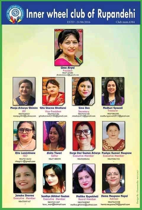 संस्थापक अध्यक्ष इना उपाध्याय लगायत क्लबका सदस्यहरू कला राना, कल्पना भुषाल, मिरा सूर्यवंशी, सम्झना स्रेष्ठ, मन्जु नेपाल, बिसन पोख्रेल, शावित्री खत्री,कमला पान्डे पुष्पा भुसाल, दुर्गा अधिकारी पंगेनी,कमला पन्डे, कल्पना पान्डे मगर, बिमला अधिकारी, लक्ष्मी काफ्ले, दिल कुमारी भट्टराई ,संगिता ज्ञवाली , सन्ध्या घिमिरे रहनु भएको छ ।