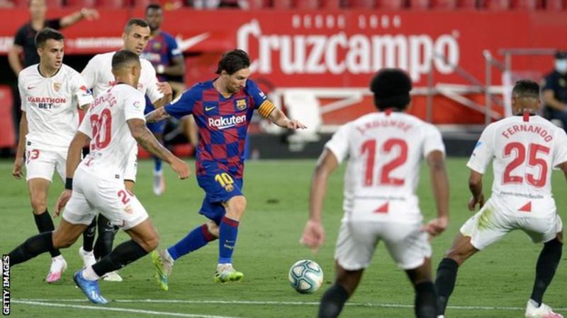 शुक्रबार रातिको खेलमा लियोनल मेस्सीले पहिलो हाफमा प्रहार गरेको फ्रि–किक बारमा लागेर गयो। सेभिल्लाको डिफेन्स तोड्न बार्सिलोनालाई मुश्किल परेको हो ।