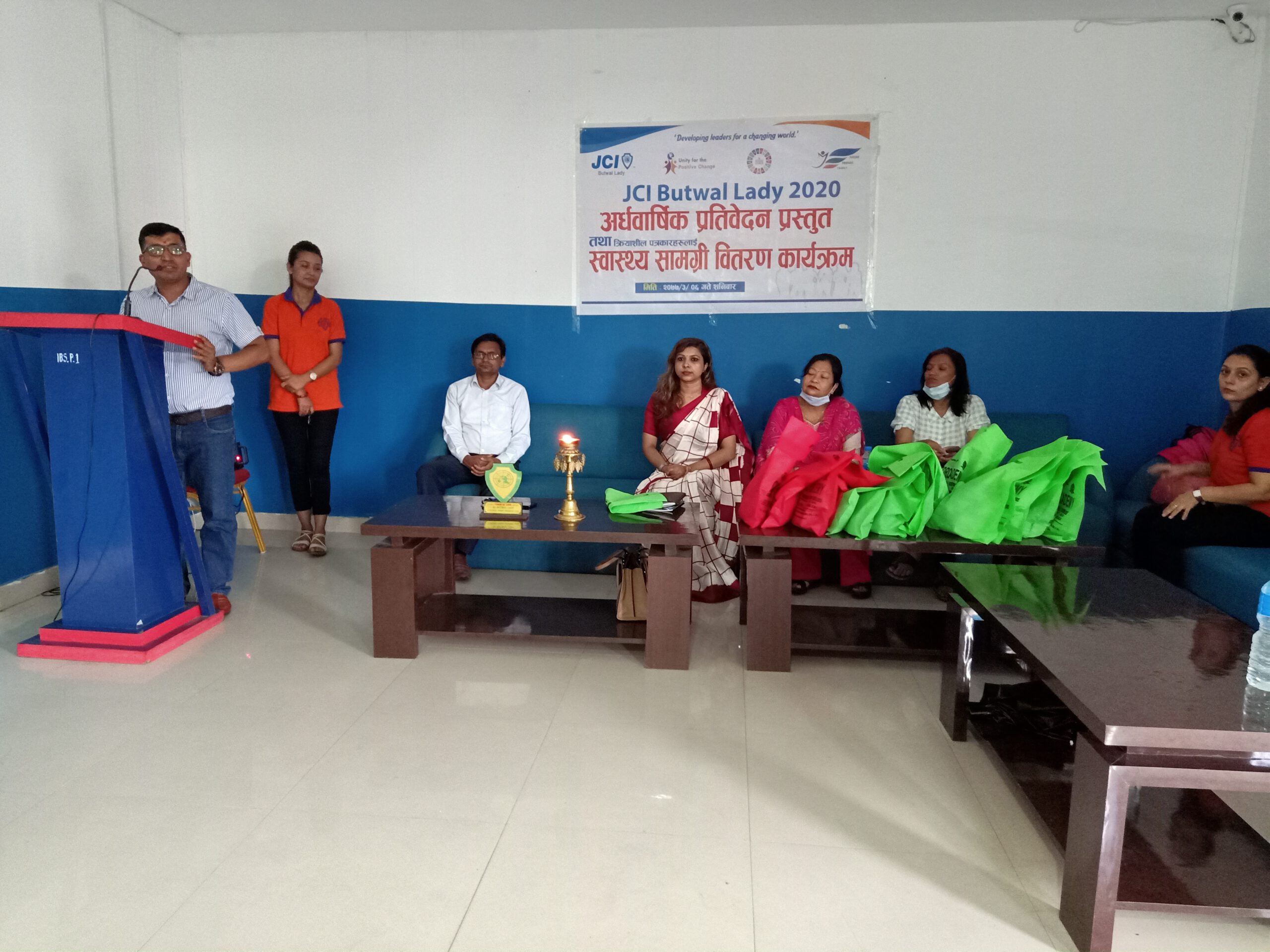 बुटवल । जेसीआई बुटवल लेडि (महिला जेसीज) ले अर्धबार्षिक प्रतिवेदन प्रस्तुत तथा संचारकर्मीका लागि स्वास्थ्य सामग्री वितरण कार्यक्रम गरेको छ ।