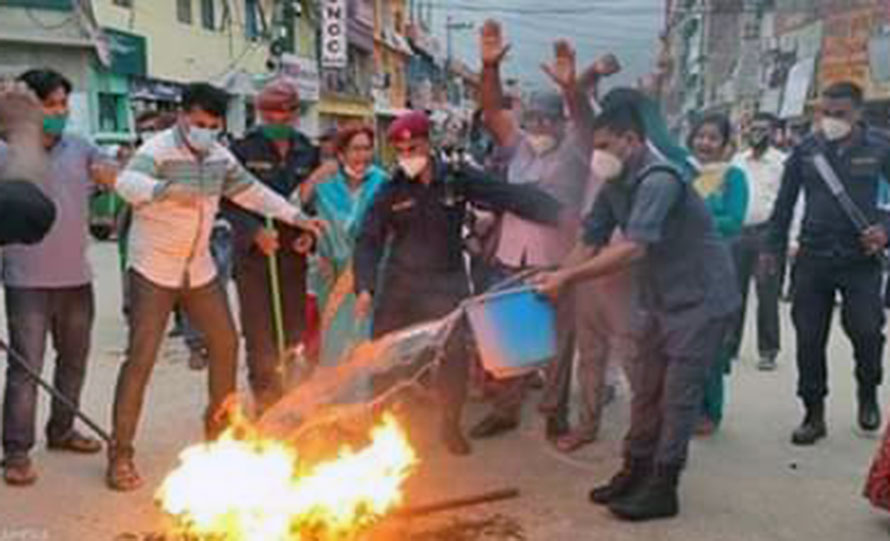 जनता समाजवादी पार्टी निकट महिला र युवाले स्थानीय भानु चोकमा प्रधानमन्त्री ओलीको पुत्ला जलाएका हुन् । त्यसक्रममा उनीहरूले प्रधानमन्त्री ओली र नेकपाको विरोधमा चर्को नारावाजी पनि गरेका थिए । पुत्ला जलाइसकेपछि प्रहरीले पुगेको थियो ।