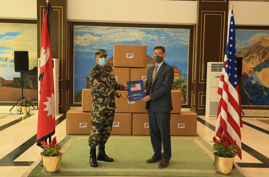 काठमाडौं । अमेरिकाले कोरोना भाइरसको रोकथाम विरुद्ध नेपाली सेनालाई स्वास्थ्य सामग्रीहरु हस्तान्तरण गरेको छ ।
