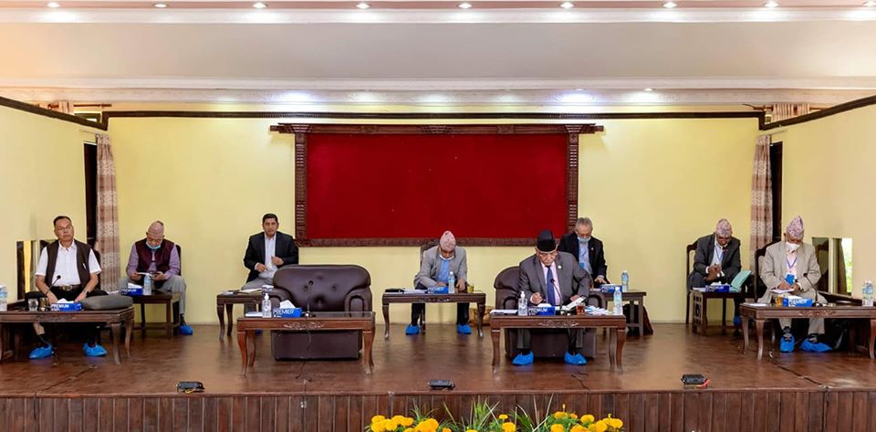 आजको बैठकमा बैठकमा लिलामणि पोखरेल, मातृका यादव, देव गुरूङ, गोकर्ण विष्ट, शंकर पोखरेल, पम्फा भुसाल, छविलाल विश्वकर्मा, बेदुराम भुसाल, रघुवीर महासेठ, अमृतकुमार बोहरा, भीम रावल, अष्टलक्ष्मी शाक्य, भीम आचार्य, केशव बडाल, गणेश साह, मुकुन्द न्यौपाने र नारयणकाजी श्रेष्ठले धारणा राखेको प्रधानमन्त्रीका प्रेस सल्लाहकार सुर्य थापाले जानकारी दिए ।