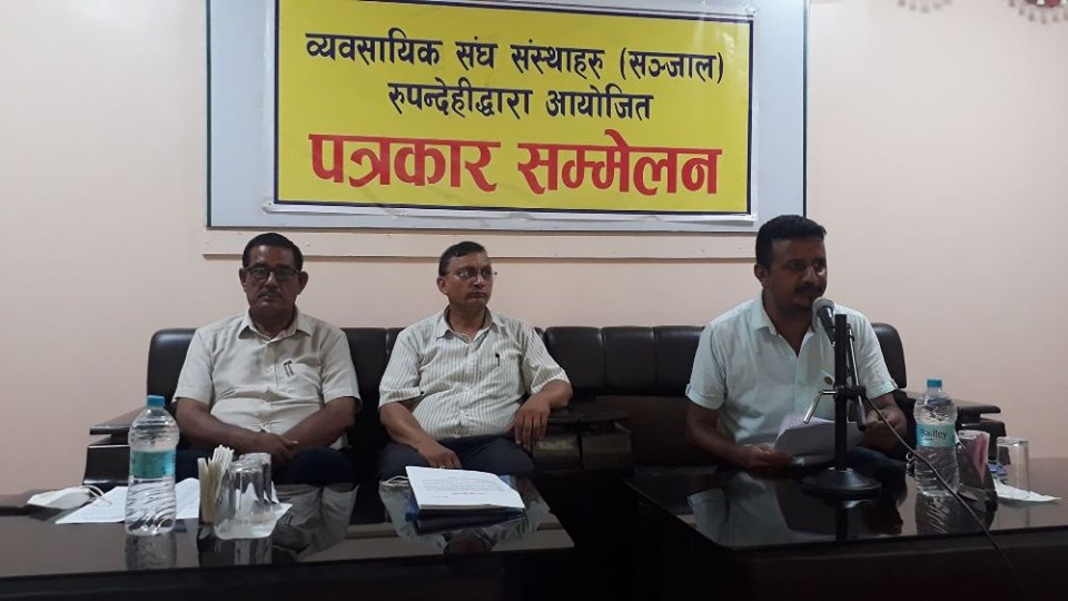 रुपन्देहीका दर्जन बढी व्यवसायिक संघ संस्थाहरुको छाता संस्था व्यवसायिक संघ संस्थाहरु (सञ्जाल) रुपन्देहीले बुधबार बुटवलमा पत्रकार सम्मेलनको आयोजना गरी विभिन्न ५ बुँदे मागसहित समस्या समाधान गर्न सम्बन्धित पक्षलाई आग्रह गरेका छन् ।