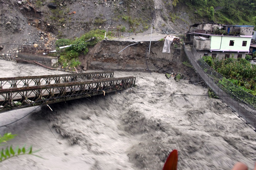 यसैबीच रघुगङ्गा नदीमा आएको बाढीले राहुघाटको बेलिब्रिज बगाएपछि म्याग्दीको रघुगङ्गा र अन्नपूर्ण गाउँपालिका हुँदै मुस्ताङ जोड्ने बेनी जोमसोम सडक पूर्णरुपमा अवरुद्ध भएको छ । नदीको कटानका कारण बेलिब्रिजको राहुघाटतर्फको जीप भत्काएर बगाएको रघुगङ्गा गाउँपालिकाका अध्यक्ष भवबहादुर भण्डारीले बताए ।