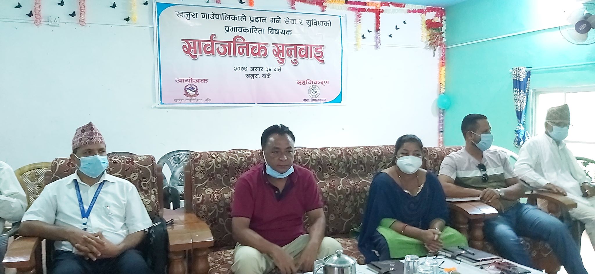 खजुरा गाउँपालिकाले प्रवाह गर्ने सेवा सुविधा र त्यसको प्रभावकारिताबारे आयोजित सार्वजनिक सुनुवाईमा भाग लिँदै गाउँपालिकाबाट प्रवाह हुने सेवाबारे खजुराका विभिन्न वडाबाट सहभागीले गांउ पालिकाको गतिबिधिको खुलेर आलोचना गरेका थिए ।