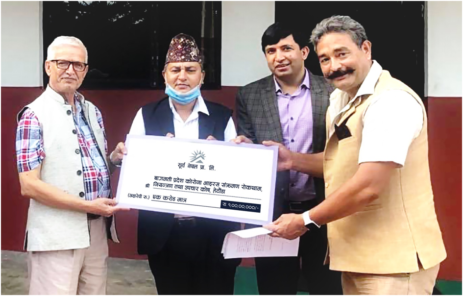 काठमाडौं । सूर्य नेपाल प्रा.लि.ले कोरोना रोकथाम तथा नियन्त्रणका लागि सातवटै प्रदेशलाई रु. १ करोडको दरले सहयोग गरेको छ ।