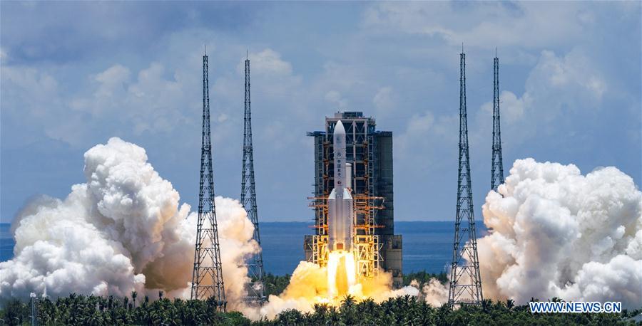 A Long March-5 rocket, China’s largest launch vehicle, carrying the spacecraft with a mass of about 5 tonnes, soared into the sky from the Wenchang Spacecraft Launch Site on the coast of southern China’s island province of Hainan at 12:41 p.m. (Beijing Time).
