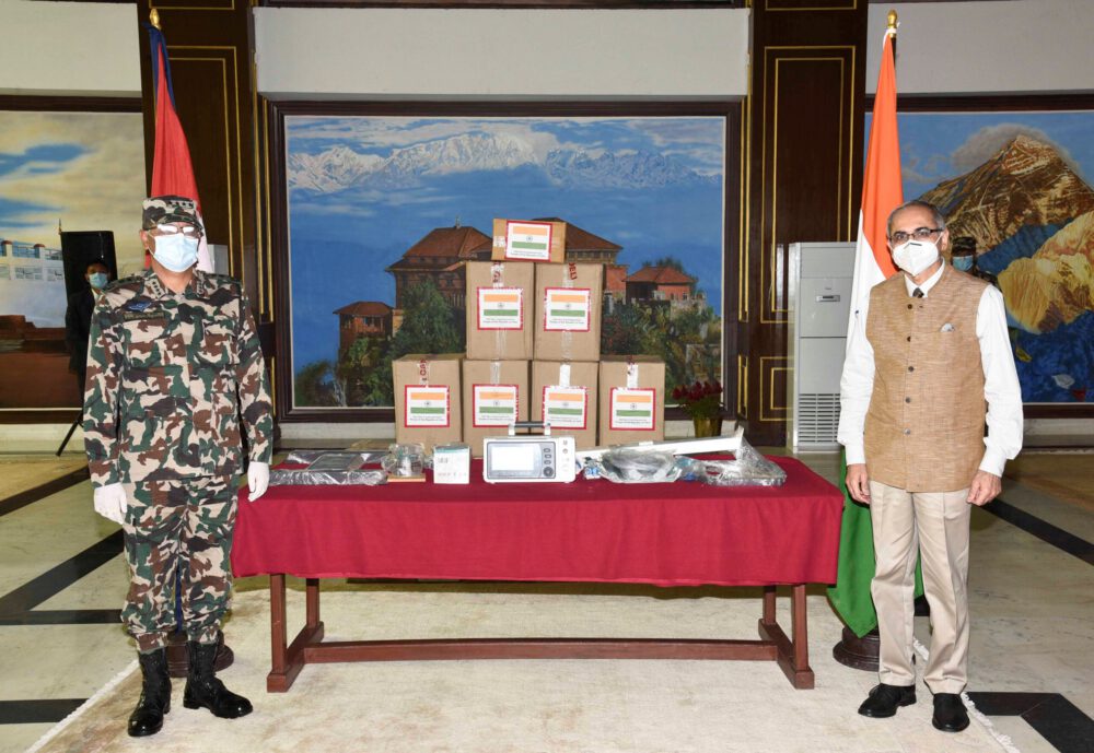 नेपाल सरकारले जारी गरेको कोभिड-१९ महामारी रोकथाम, प्रतिकार्य र नियन्त्रणको लागि ‘कोभिड-१९ प्रतिकार्य राष्ट्रिय अभियान योजना २०७७’ सफल बनाउन भारत सरकारले १० थान भेन्टिलेटर उपलब्ध गराएको नेपाली सेनाले जनाएको छ । भारत सरकारबाट आईपुगेका भेन्टिलेटर लिएर भारतीय राजदुत क्वात्रा नेपाली सेनाको जंगी अड्डा पुगेका थिए । भारतले उपलब्ध गराएको भेन्टिलेटरको मुल्य २ करोड ८० लाख भारतीय रुपैयाँ वराबरको रहेको नेपाली सेनाले जनाएको छ ।