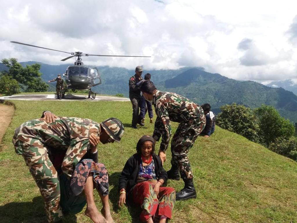 शुक्रबार विहान गएको सुख्खा पहिरोमा परि ३७ वटा घर पुरिएको थियो । उक्त स्थानमा पहिरोबाट सकुशल रहेका नागरिकहरुलाई नेपाली सेनाको हेलिकप्टरद्वारा राहत सामग्री पुर्या्एको छ ।
