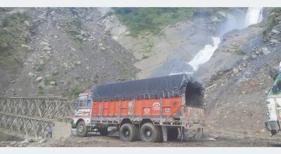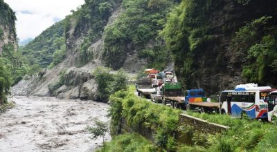 बेनी–जोमसोम–कोरला सडक खण्ड : काभ्रेभीरमा सुख्खा पहिरो खस्दा सडक मर्मतको काम अवरुद्ध