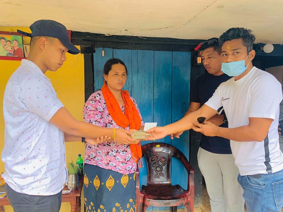 उनको परीवारलाई युजी ग्रुप बुटबलका सदस्यहरुले रकम जम्मा गरी उनको घर गुल्मी पुगेर नगद तिन लाख ३ हजार ४ सय र गुल्मी तम्घास निवासी प्रितम काउचा मार्फत ५० हजार गरी तिन लाख ५३ हजार ४ सय नगद उनको परिवारलाई हस्तान्तरण गरेको समितीका सदस्य नगेन्द्र सिहले बताए । उनको एक छोरा छोरी श्रीमती रहेका छन ।