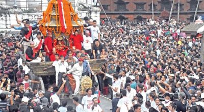 काठमाडाैं । कोरोना भाइरसको सङ्क्रमणबाट बच्न जारी निषेधाज्ञाका कारण प्रत्येक वर्ष भाद्र शुक्ल चतुर्दशीका दिन मनाइने इन्द्रजात्रामा यस वर्ष रथ तान्न स्थगन गरेपछि क्षमा पूजा गरेर मनाइने भएको छ ।