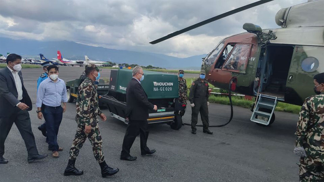 मौसम खराबीका कारण बिहीबार बीच बाटोबाट फर्किनुभएका गृहमन्त्री थापा आज पुनःराहत सामग्रीसहित सेनाको हेलिकप्टरमार्फत ढोरपाटन पुग्नुभएको हो ।
