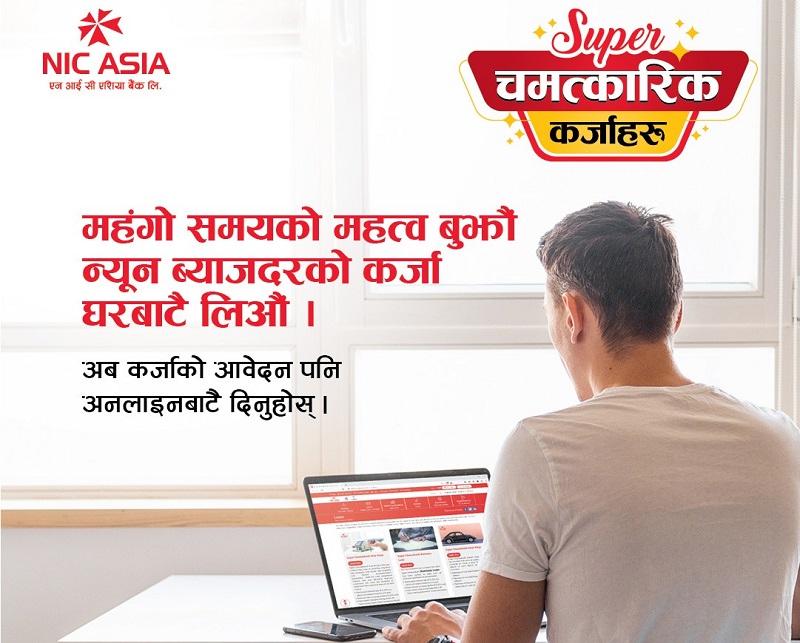काठमाडौं । एनआईसी एशिया बैंकले ग्राहकहरुलाई अनलाइनमार्फत कर्जा आवेदन दिन सकिने ‘अनलाइन कर्जा आवेदन प्रणाली’ को व्यवस्था गरेको छ ।
