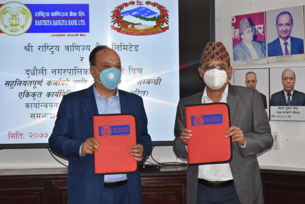 सम्झौतापत्रमा बैंकका प्रमुख कार्यकारी अधिकृत किरणकुमार श्रेष्ठ र दुधौली नगरपालिकाका नगर प्रमुख घनश्याम राउतले हस्ताक्षर गरेका छन् ।