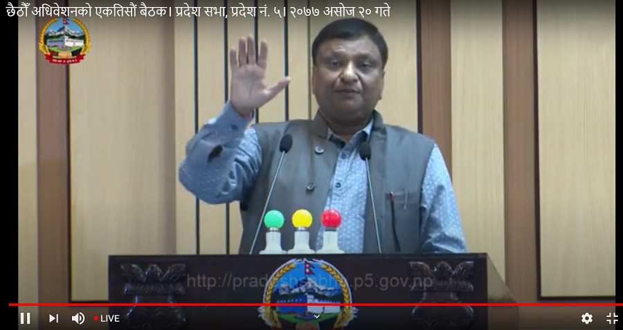 प्रदेश ५ प्रदेशसभा बैठक राजधानी र प्रदेशको नामबारे छलफल हुँदै प्रकाशित मिति : २० आश्विन २०७७, मंगलबार १ : ३४ बजे