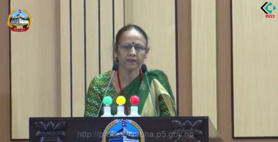 प्रदेश ५ प्रदेशसभामा सरकारले प्रस्ताव गरेको राजधानी र नामाकरणको प्रस्तावमा संशोधन प्रस्ताव प्रस्तुत गर्दै सांसदलाई घिसारेर बाहिर निकाल जस्ता असंसदीय शब्द प्रयोग गरेको भन्दै खेद प्रस्ताव राखेकी छिन् ।