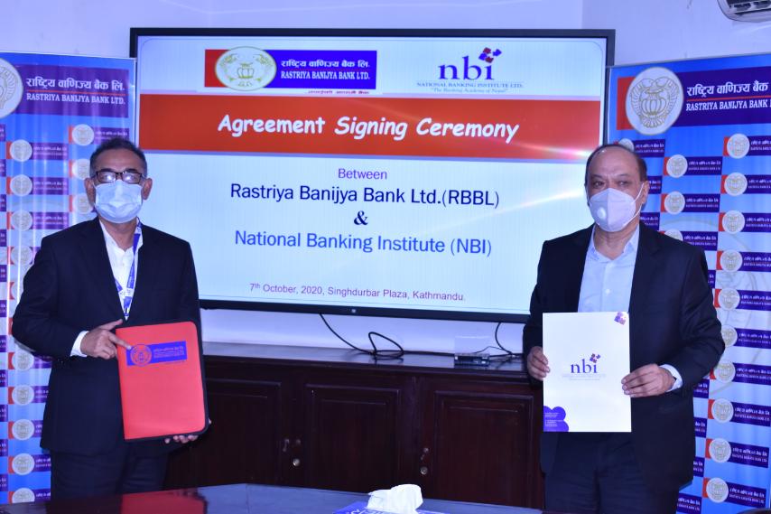 काठमाडौं । राष्ट्रिय वाणिज्य बैंक लिमिटेड र नेशनल बैंकिङ्ग इन्ष्टिच्युट लिमिटेड (NBI) बीच बैंकिङ्ग तालिम संचालन गर्ने सम्बन्धी बुधबार सम्झौता भएको छ ।