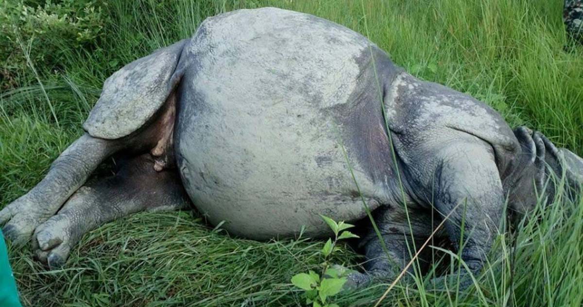 चितवन रािष्ट्रय निकुञ्जका सूचना अधिकारी अशोक रामका अनुसार नवलपुरको भेलौजीमा गैँडा मृत फेला परेको हो ।