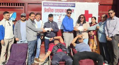 बुटवल । नेपाल स्वयंसेवी रक्तदाता समाज रुपन्देही जिल्लाको ९१ औ नियमित रक्तदान कार्यक्रम शनिबार बुटवलमा सम्पन्न गरेको छ ।