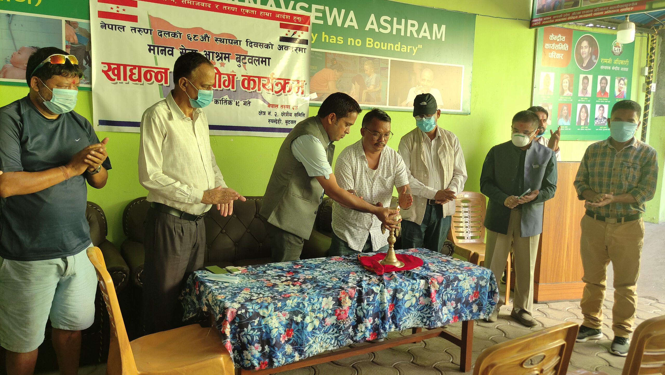 आईतबार एक कार्यक्रमका बिच नेपाली काग्रेस लुम्बिनी प्रदेशका सभासद फखरुद्धिन खानले आश्रमका प्रदेश संयोजक रुपा केसीलाई करीब २५ हजार रुपैया बराबरको खाद्यान्न हस्तान्तरण गरेका थिए ।