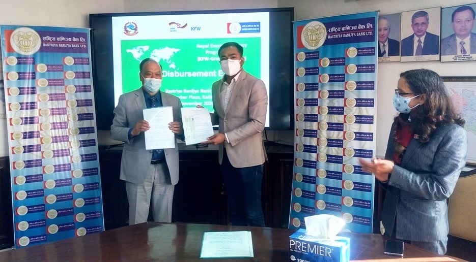 काठमाडौं । राष्ट्रिय वाणिज्य बैंकले जर्मन सरकारबाट KFW बैंकमार्फत प्राप्त अनुदान सहयोगमा संचालित Energy Efficiency Program Nepal को अनुदान सहयोग कार्यक्रमअन्र्तगत विभिन्न कम्पनीलाई रकम हस्तान्तरण गरेको छ ।