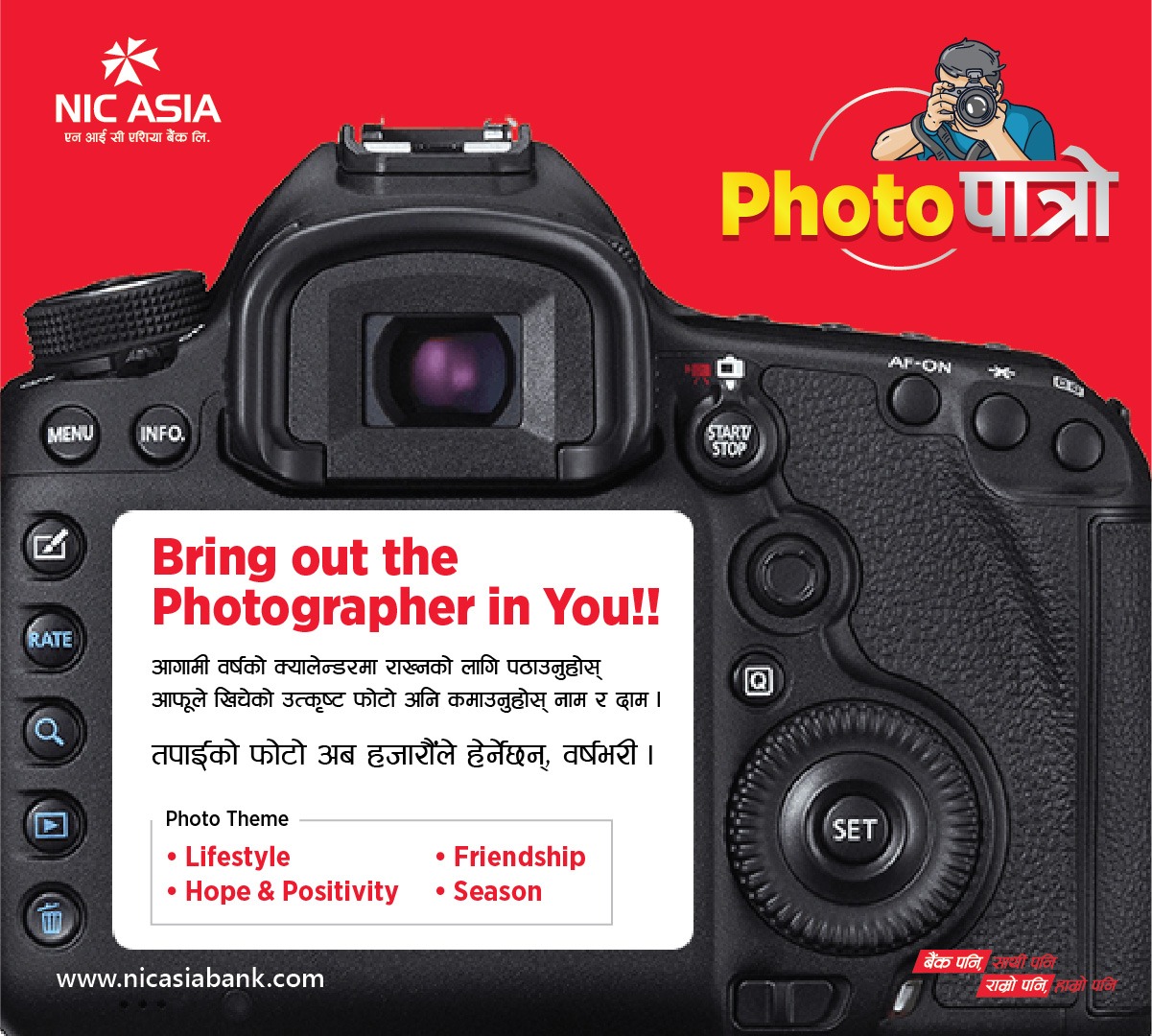 काठमाडौ । एन आई सी एशिया बैंकले ‘फोटो–पात्रो २०७८’ प्रतियोगिताको आयोजना गरेको छ । बैंकले ग्राहकसँग रहेको फोटो खिच्ने कौशलको कदरस्वरूप २०७८ को क्यालेण्डरमा उनीहरूले कैद गरेका फोटोलाई स्थान दिने योजनाअनुरुप यस प्रतियोगिताको आयोजना गरेको हो । यसरी प्राप्त हुने फोटोलाई क्यालेण्डरमा राख्ने मात्र नभइ बैंकले उचित नगद पुरस्कारको व्यवस्था समेत गरेको छ ।