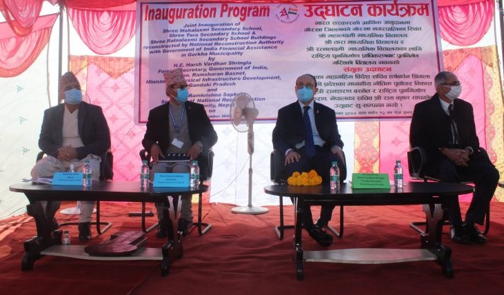 भारत सरकारको सहयोगमा गोरखा नगरपालिकाभित्र भूकम्पले क्षति पु-याएका तीन विद्यालय पुनःनिर्माण सम्पन्न भएसँंगै शुक्रबार नवनिर्मित भवनको उद्घाटन गर्दै श्रृंगलाले यस्ता खालका सहयोगले नेपाल र भारतबीचको वर्षौदेखिको सम्बन्ध झन् प्रगाढ हुने बताए।