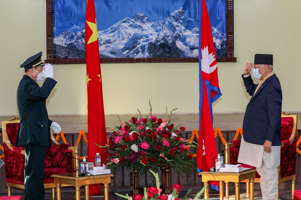 काठमाडौं । प्रधानमन्त्री केपी शर्मा ओली र चिनियाँ स्टेट काउन्सिलर एवं रक्षामन्त्री वेइ फेङ्हेबीच भेटवार्ता भएको छ ।