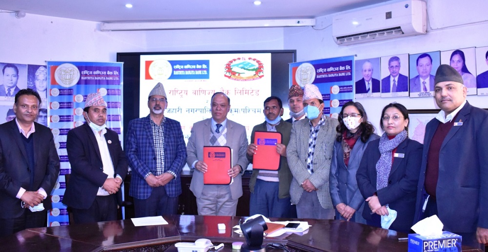 काठमाडौं । राष्ट्रिय वाणिज्य बैंक लिमिटेड र चौरजहारी नगरपालिका, रुकुम (पश्चिम) जिल्ला बीच सहुलियतपूर्ण कर्जामा सहकार्य गर्ने सम्बन्धमा बुधबार काठमाडौंमा सम्झौता भएको छ ।