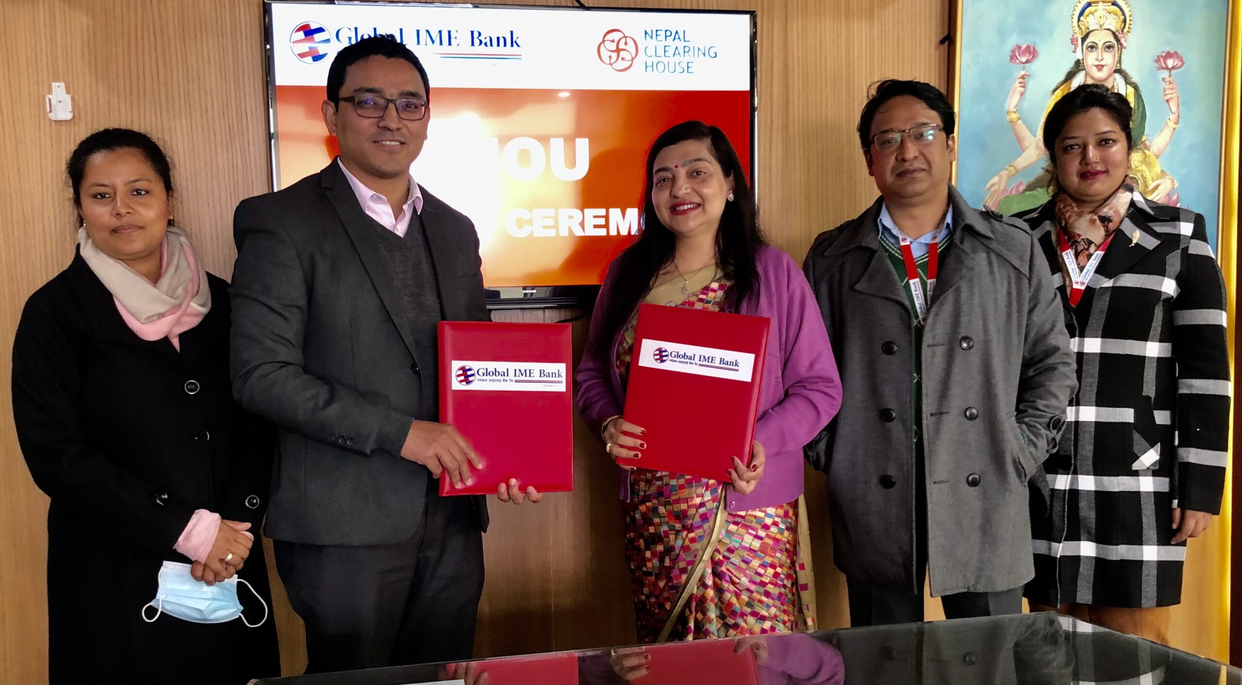 उक्त सम्झौता पत्रमा ग्लोबल आइएमई बैंक लिमिटेडका वित्तीय स्रोत व्यवस्थापन विभाग प्रमुख शान्ता सिवाकोटी र नेपाल क्लियरिङ्ग हाउस लिमिटेडका प्रमुख कार्यकारी अधिकृत श्री नीलेश मान सिंह प्रधानज्यूले हस्ताक्षर गरेका छन् ।