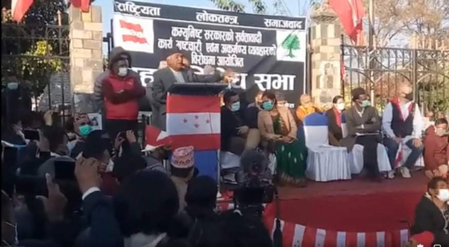 ७० वर्षसम्म जनताले लडेर ल्याएको संविधान र सपुतहरुको अथक प्रयासबाट कायम भएको व्यवस्था खलबलाउने काम भएको पनि नेता पौडेलले बताए । सरकार कम्युनिष्ट पार्टीको भएपनि देश कम्युनिष्ट नभएको भन्दै सरकारले देशलाई कम्युनिजम बनाउने दुस्साहस गरिरहेको आरोप लगाए । उनले भने, ‘सरकार कम्युनिष्ट पार्टीको होला तर देश कम्युनिजम होइन । देश साम्यवादी होइन । कम्युनिष्टको सरकार होला, कम्युनिष्ट पार्टीको होला तर राज्य कम्युनिष्ट होइन । तर राज्यलाई नै कम्युनिष्ट बनाउने दुस्साहसहरु आज यिनिहरुले गर्न गइरहेका छन् ।’
