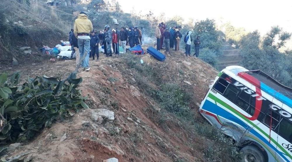 काठमाडौंबाट आरुघाटका लागी छुटेको ग १ ख ९४४६ नम्बरको रात्रीबस बुधबार बिहान साढे चार बजे अनियन्त्रित भई सडकबाट करिब २० मिटर तल खसेको हो ।