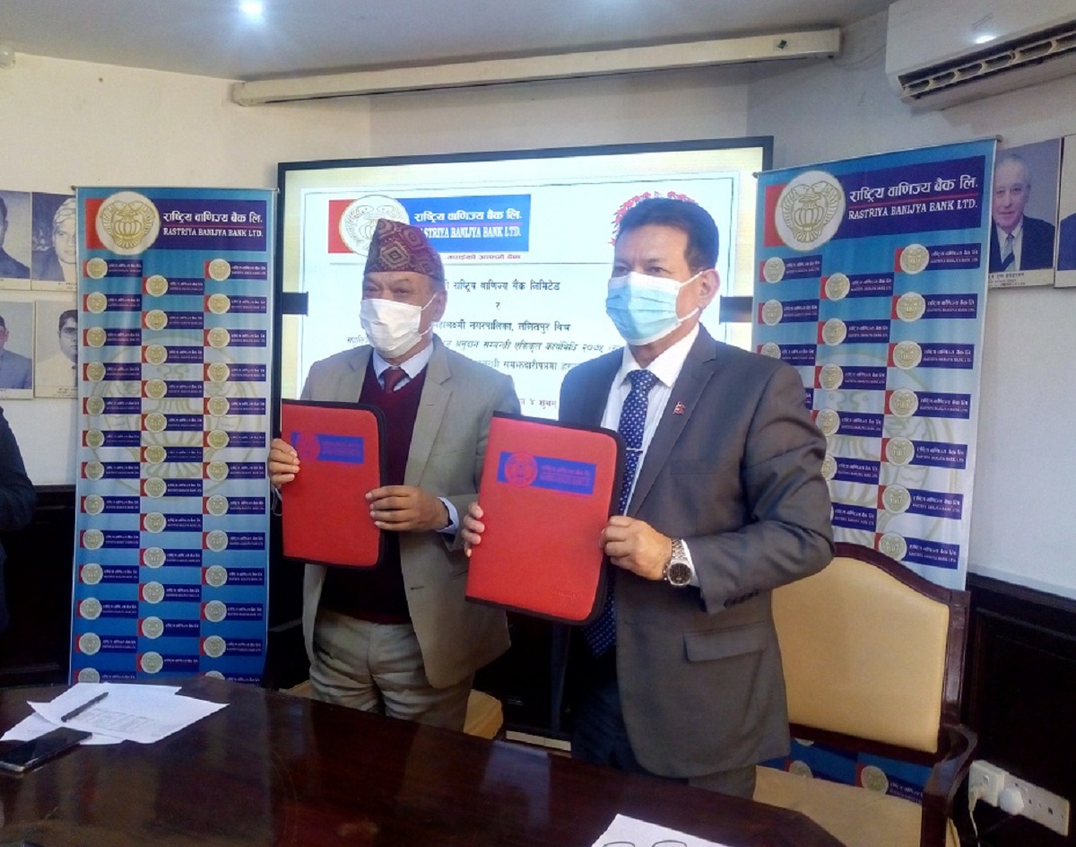 काठमाडौ । राष्ट्रिय वाणिज्य बैंक लिमिटेड र ललितपुरको महालक्ष्मी नगरपालिका बीच सहुलियतपूर्ण कर्जामा सहकार्य गर्ने सम्बन्धमा बुधबार सम्झौता भएको छ । सम्झौतापत्रमा बैंकका प्रमुख कार्यकारी अधिकृत किरणकुमार श्रेष्ठ र महालक्ष्मी नगरपालिकाका नगर प्रमुख रामेश्वर श्रेष्ठले हस्ताक्षर गरेका छन् ।