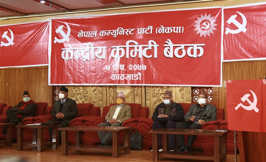 बबरमहलमा आयोजित नेकपाको प्रचण्ड–नेपाल पक्षीय केन्द्रीय कमिटी सदस्यलाई सम्बोधन गर्दै नेता नेपालले ४४१ सदस्यीय केन्द्रीय कमिटीमा आफुहरुको पक्षमा दुई तिहाई सदस्य भएका कारण यो बैठक नै आधिकारिक हुने जिकिर गरेका हुन् ।