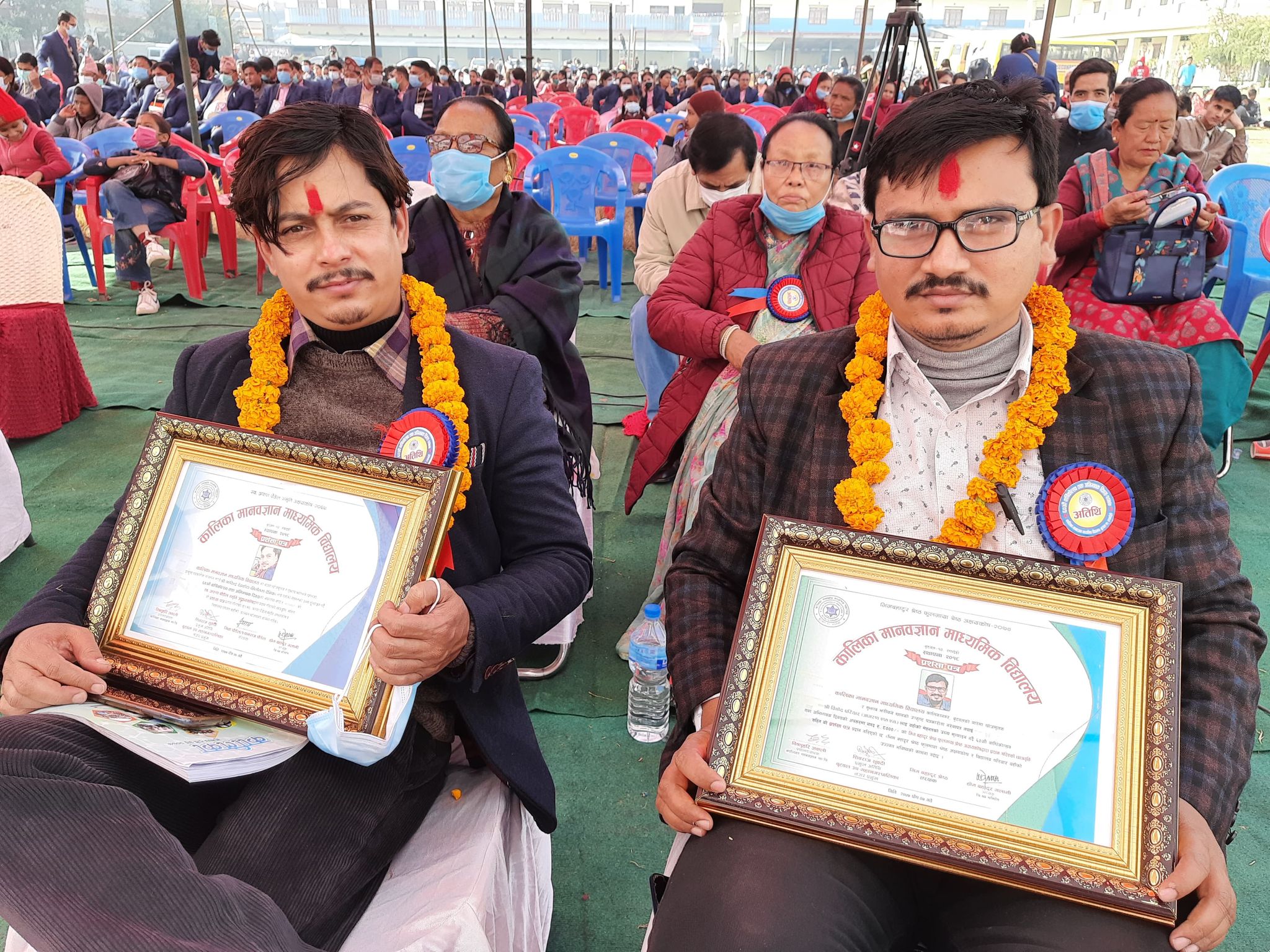 वार्षिक उत्सवका अवसरमा शिक्षा क्षेत्रमा कलम चलाए वापत दुई जना पत्रकार पुरस्कृत भएका छन् । पत्रकार विनोद परियार र झन्विद्र देवकोटा पुरस्कृत भएका छन् । भिमबहादुर फूलमायाँ श्रेष्ठ अक्षयकोषद्धारा स्थापित शिक्षा क्षेत्रमा कलम चलाए वापत नगद र सम्मानपत्रले पुरस्कृत गरिएको विद्यालयले जनाएको छ ।