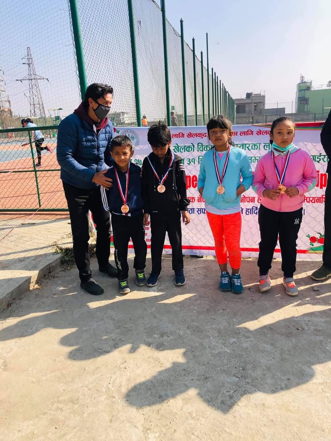 काठमाडौं सातदोबाटोस्थित लनटेनिस कोर्टमा भएको प्रतियोगितामा १० वर्ष उमेर समुहमा रुपन्देहीका वृजेश अर्यालले स्वर्ण पदक, निश्चल ज्ञवालीले आठ वर्षमुनि र संघर्ष फौदारले ९ वर्षमुनिको उमेर समुहमा कास्य पदक जितेका छन ।
