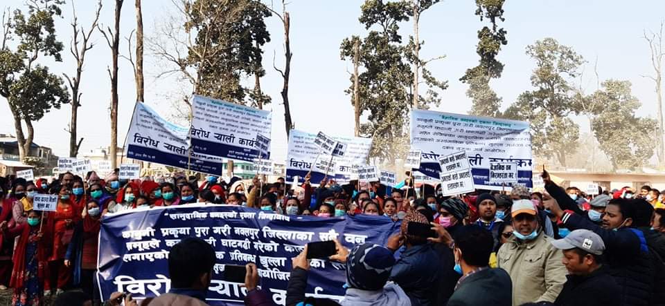 कावासाेती थकालीचाेकबाट सुरू भएकाे -याली फलफुल चाेकमा रहेकाे डिभिजन वन कार्यलय अगाडि पुगेर प्रदर्शन गरेका थिए ।